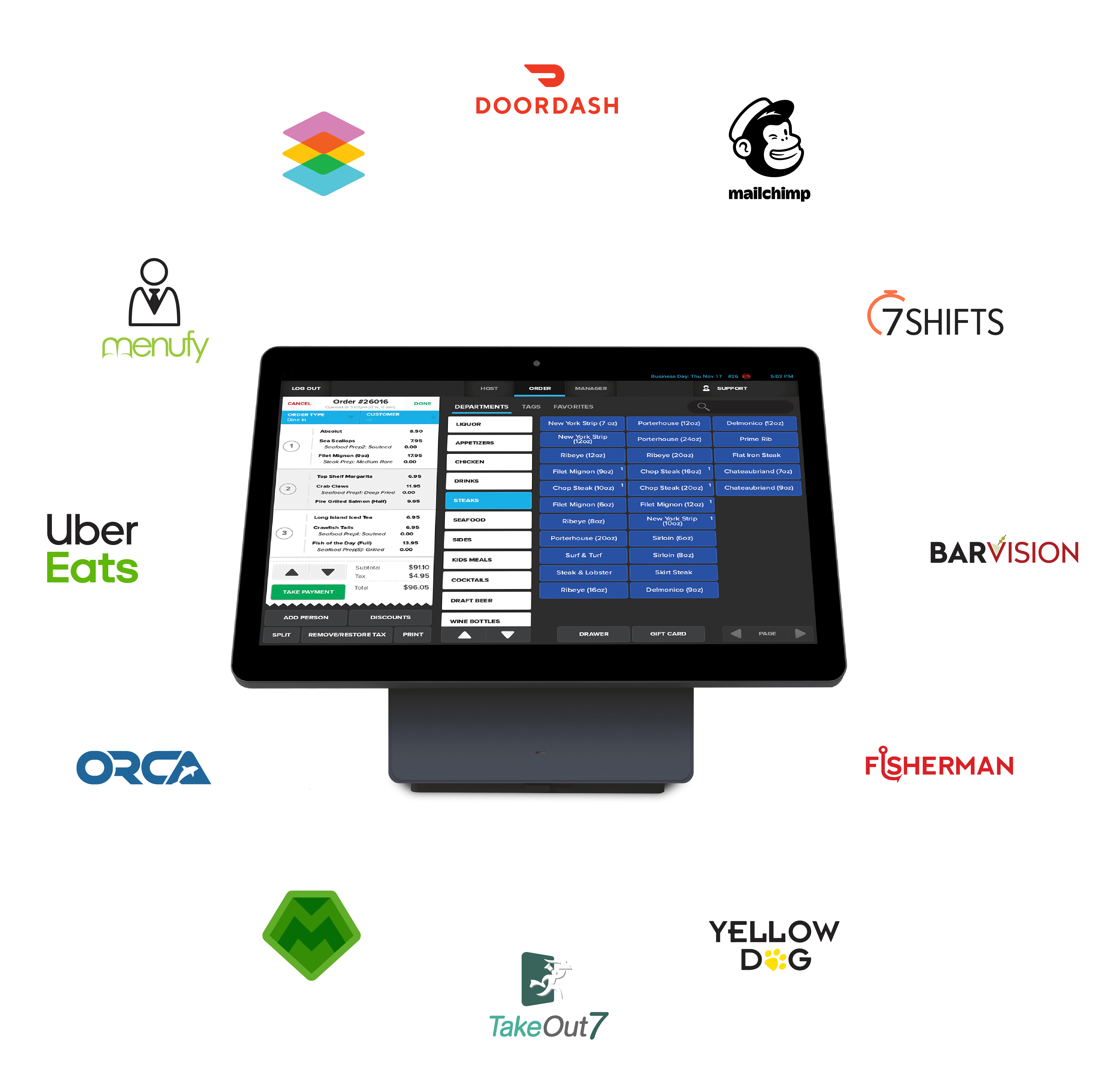 If you already have a POS system and aren’t looking for something new, we integrate our payment processing services to hundreds of the leading providers.