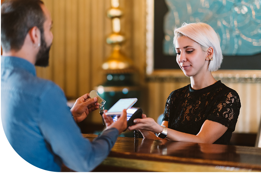 A five-star payment experience. Our unified commerce ecosystem provides a frictionless guest experience across entire hotel properties.