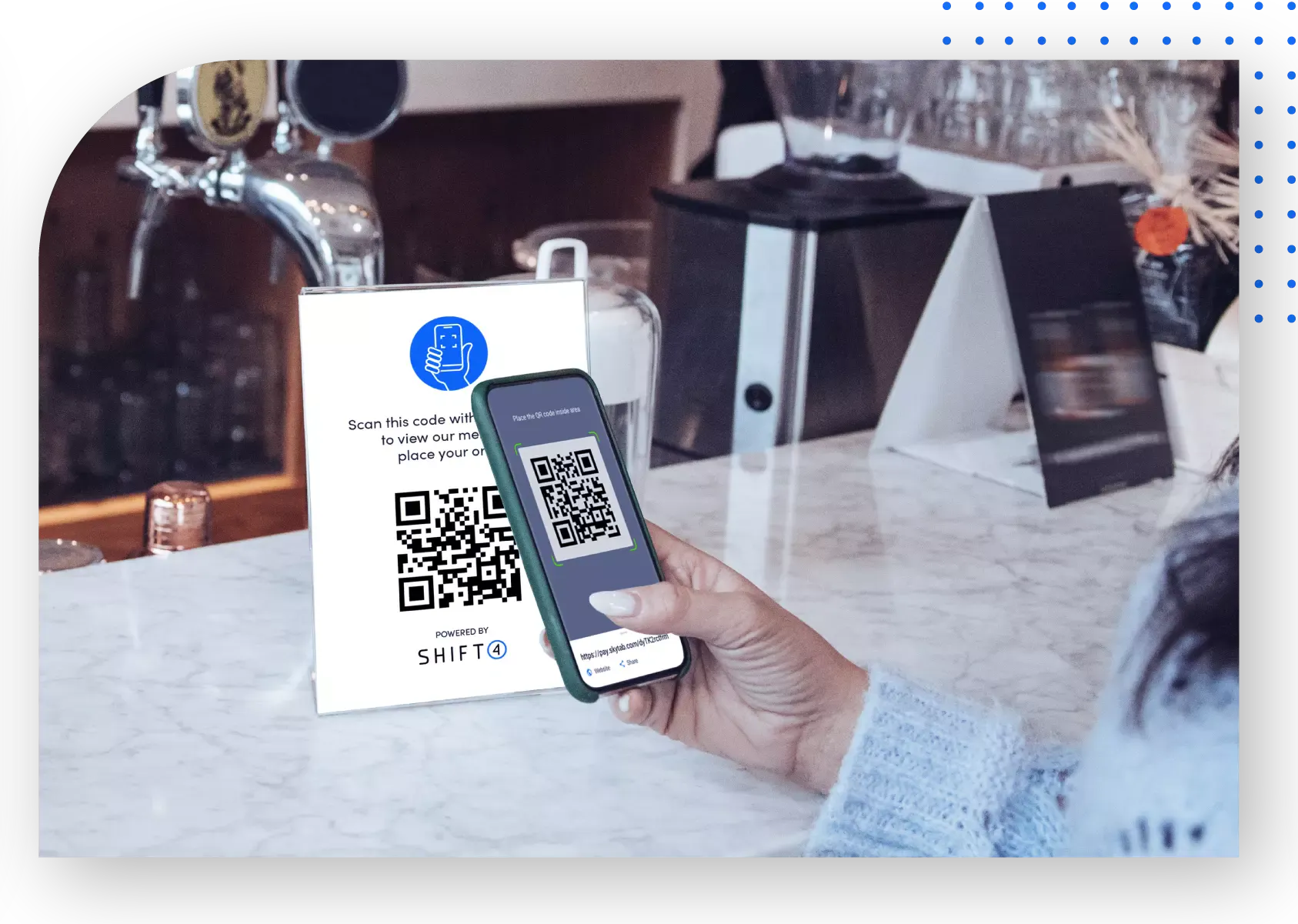 - The customer scans the code with their smartphone and the bill opens in their phone’s web browser